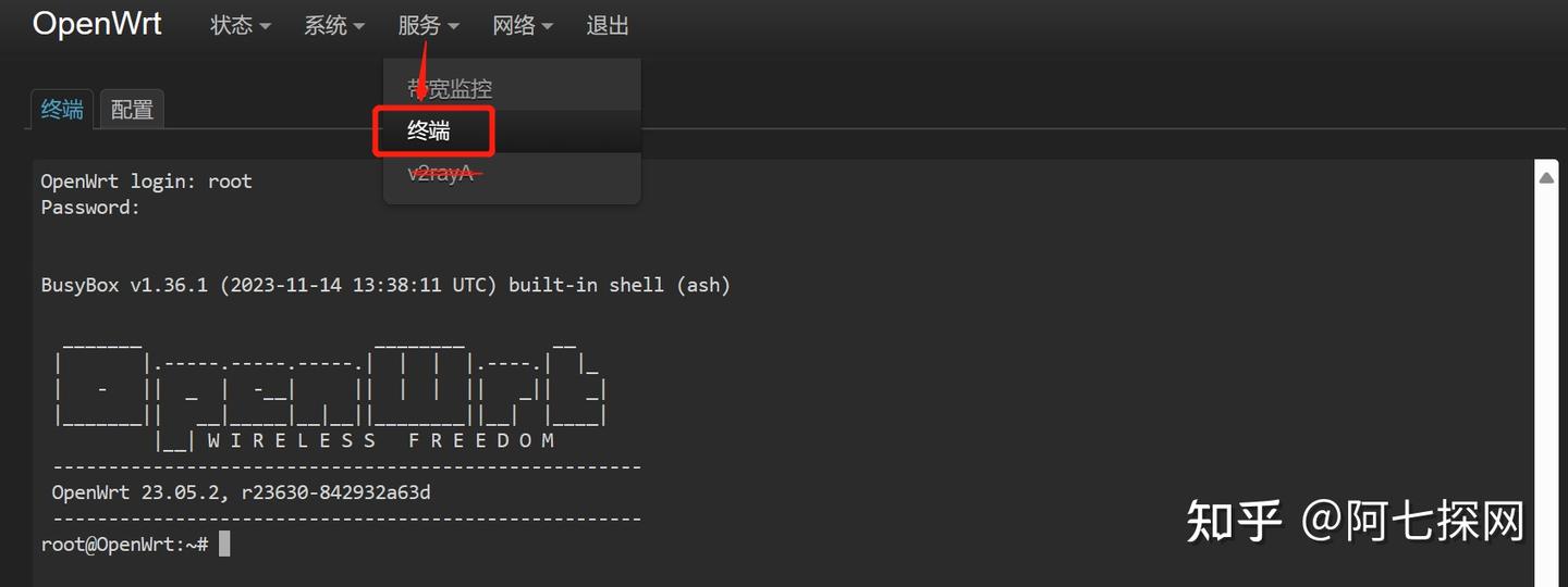 废话就不多说了,我们现在就进入主题,登录OpenWrt Web管理界面,打开ttyd网页终端并登录: